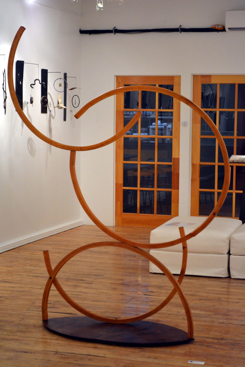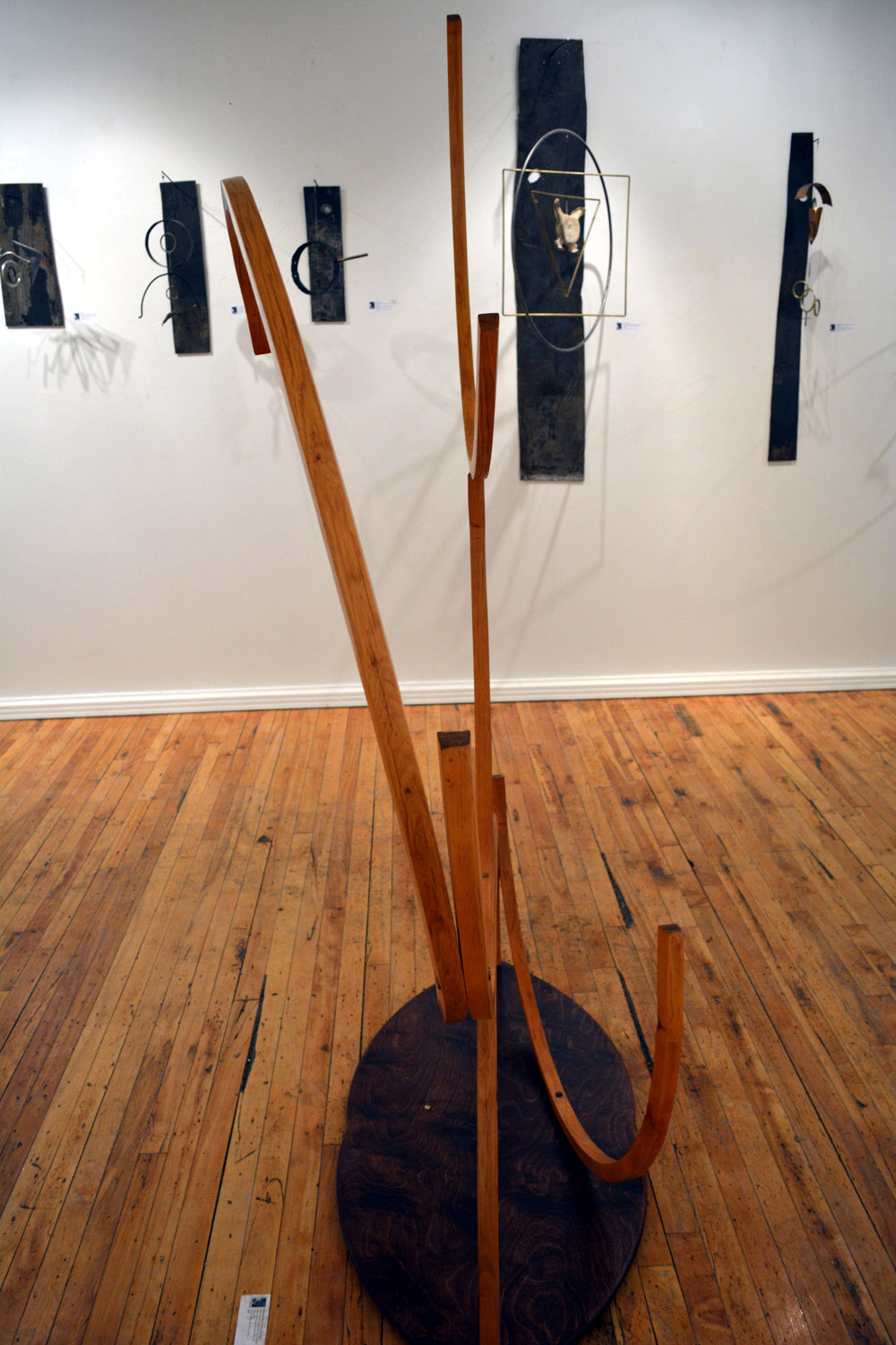 Rising Arches steam bent oak, stain, wax, hardware. Base: Russian birch, stain, varnish, 189x202.5x45cm (72x81x18in) 2015