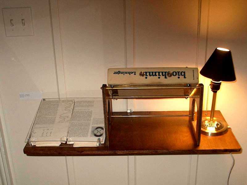 Lehninger: Biochemistry Book, mirror, found objects, judas, ground glass, lamp 20 x 13.1 x 4.3cm (8 x 5.25 x 1.7in) 2002